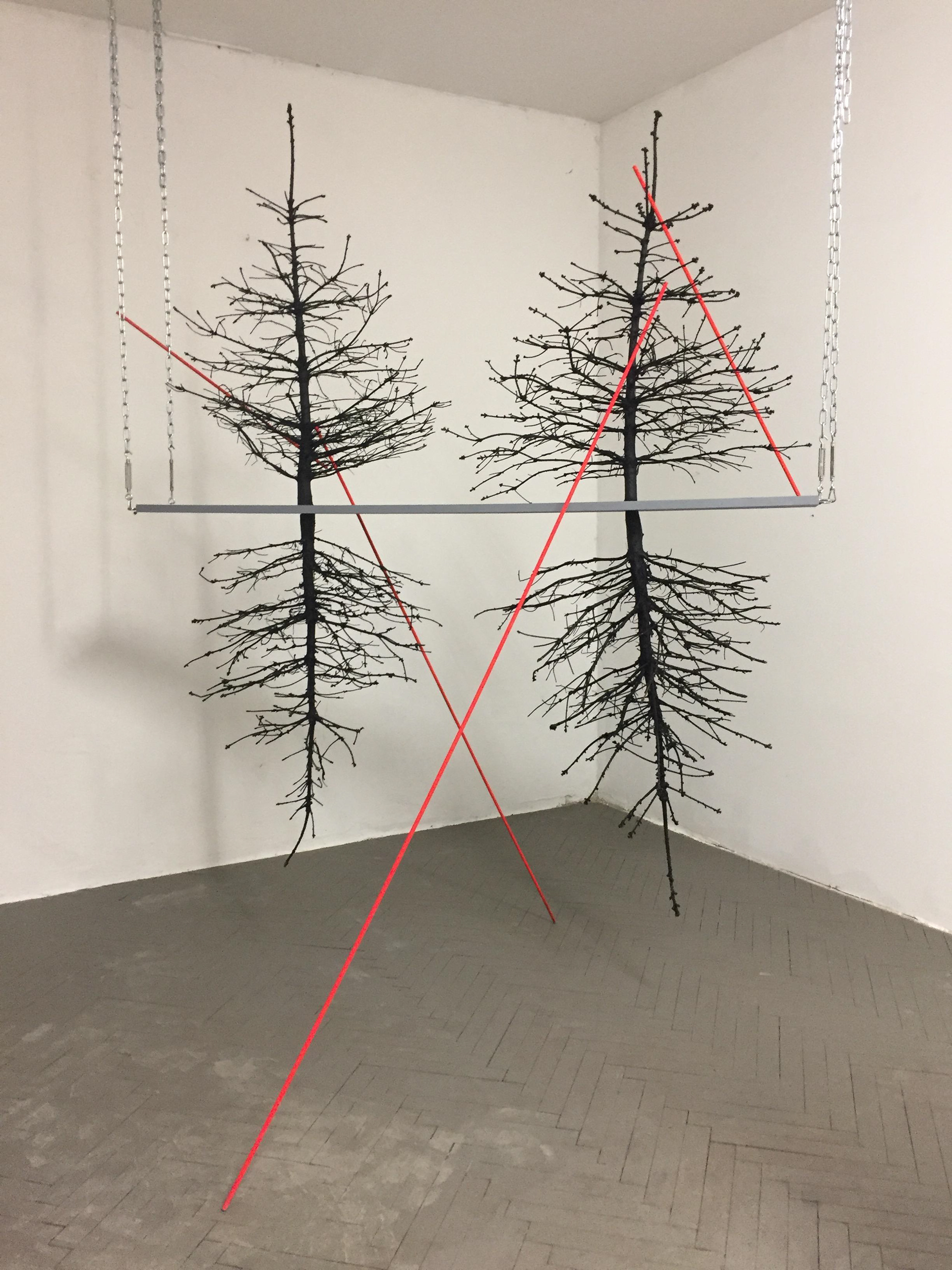Swing, trees, iron rods, wood, chain, 3,50 x 2,00 x 0,50 m, 2012