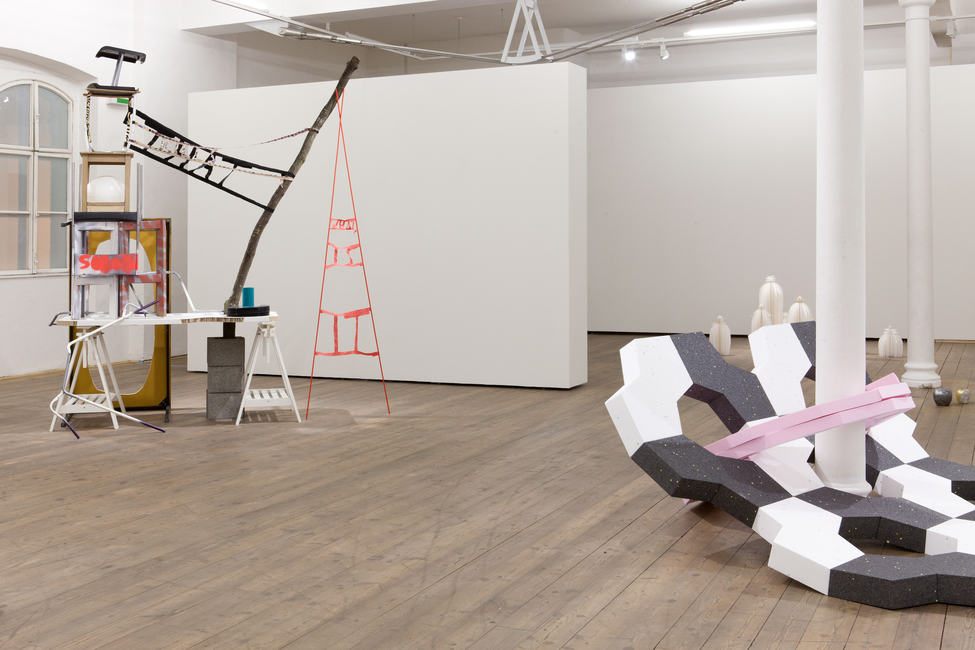 "elastic collisions", Installation view from left: Sibylle Jazra, Thomas und Reneé Rapedius, Sebastiano Sing,