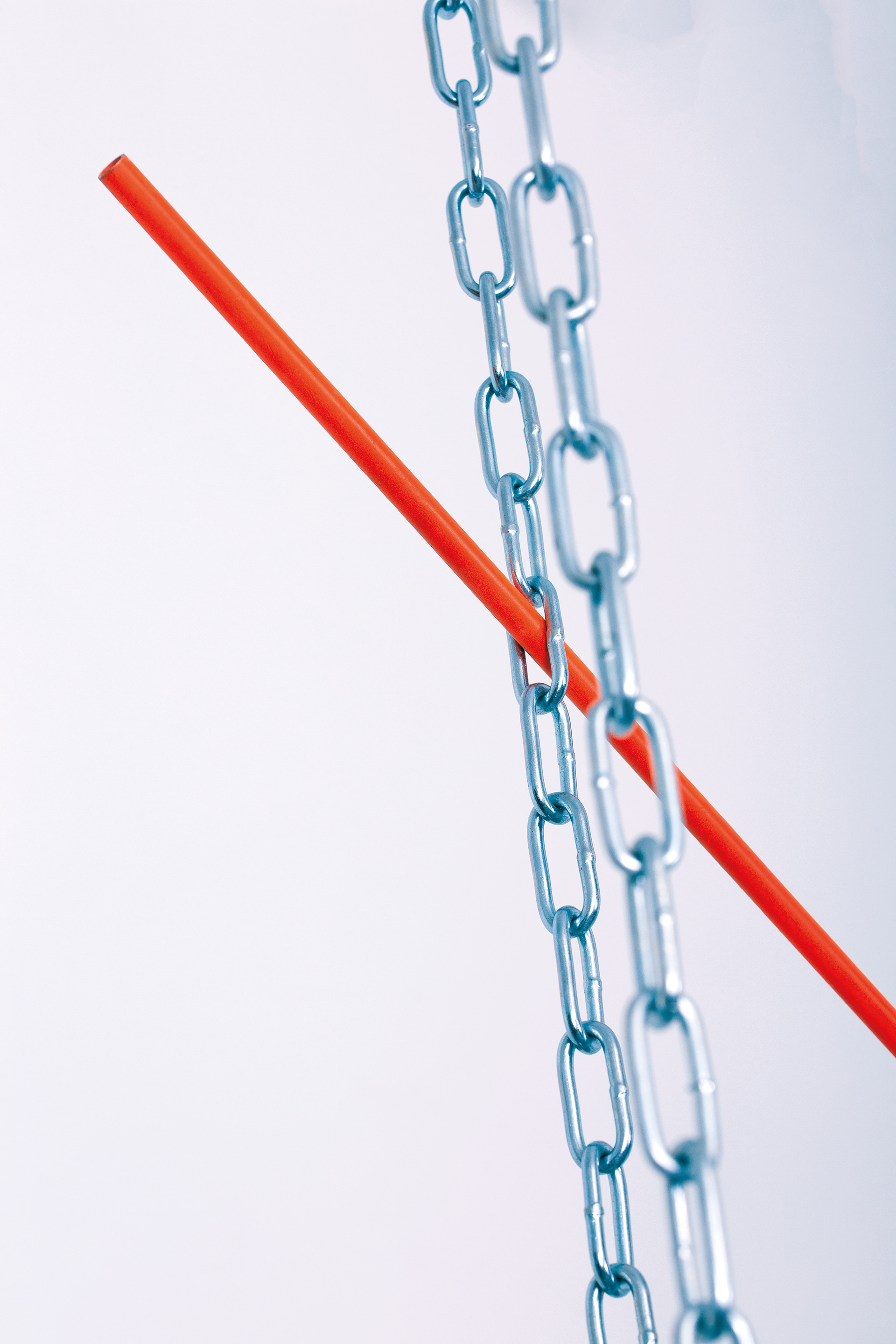 Fir trees, wood, metal rods, chains, acrylic paint, 450 x 200 x 50 cm